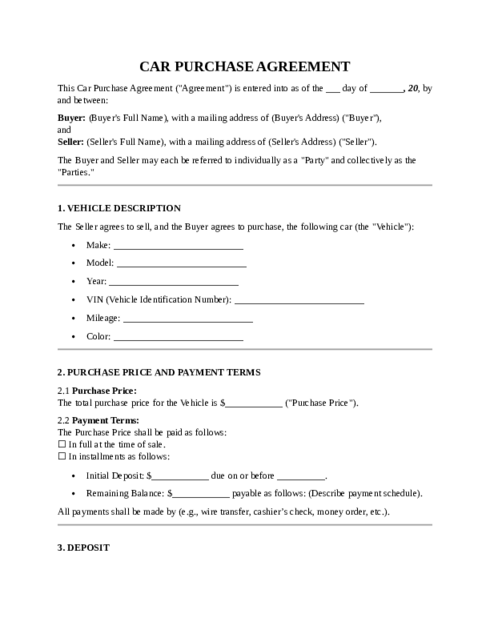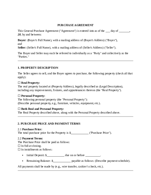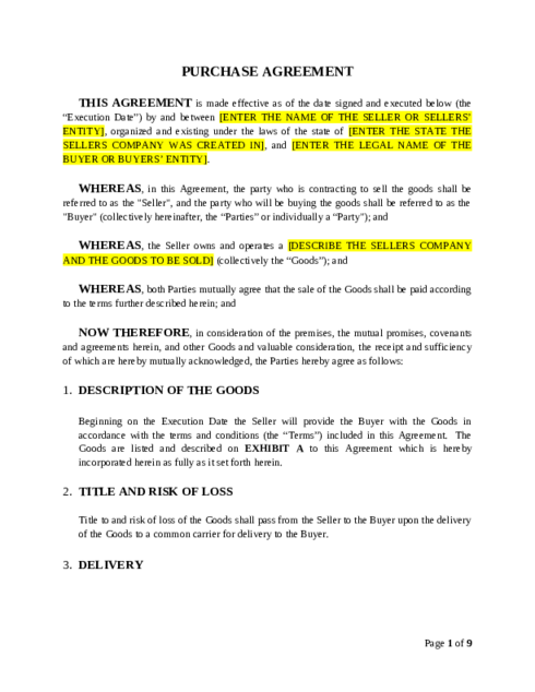 Find Purchase Agreement Templates by Type