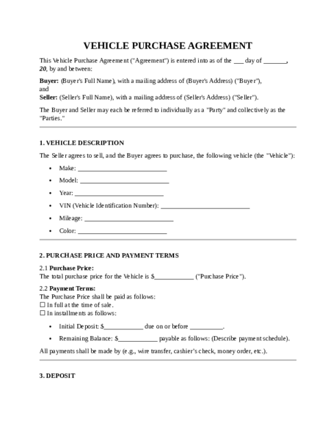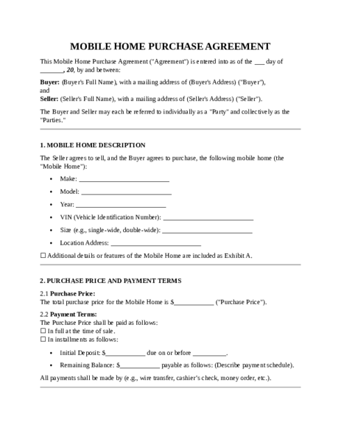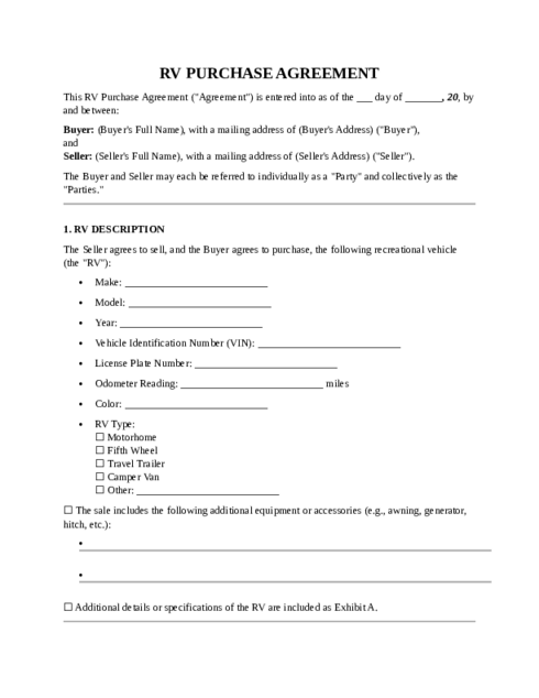 review a RV Purchase Agreement