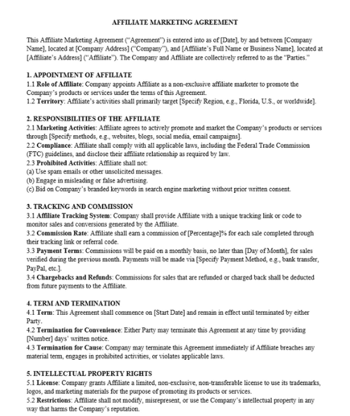 Affiliate Marketing Agreement Templates