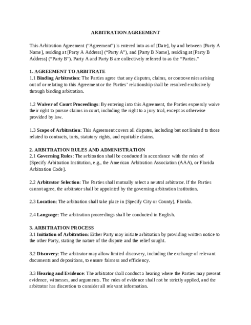 Arbitration Agreement Template