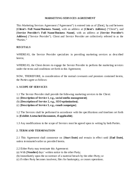- Visalia Marketing Services Agreement Lawyers