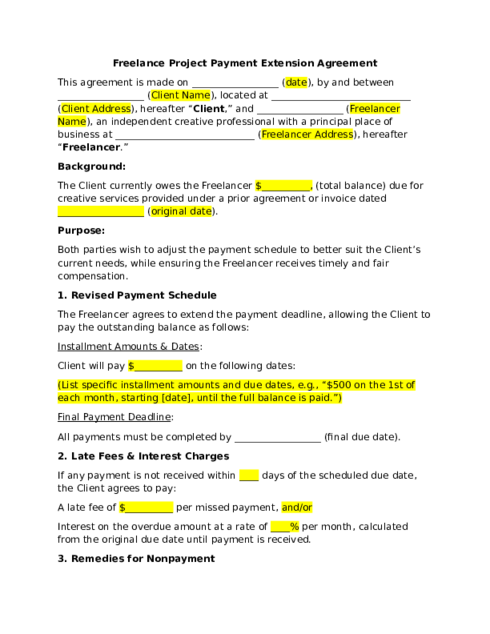 - Modesto Freelance Project Payment Extension Agreement Template Lawyers