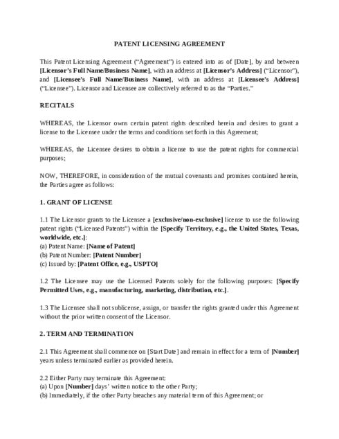 - Modesto Patent Licensing Agreement Lawyers
