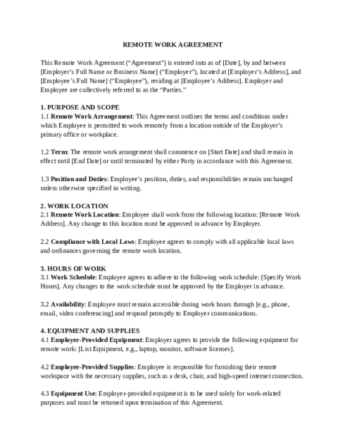 Find Remote Work Agreement Template by Type