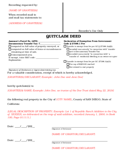 - San Diego Quitclaim Deed Lawyers