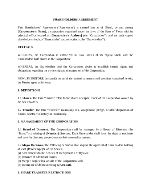 - Murrieta Shareholders Agreement Lawyers