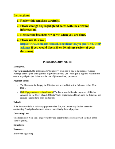 - Avg cost to review a Promissory Note Agreement: $270.00