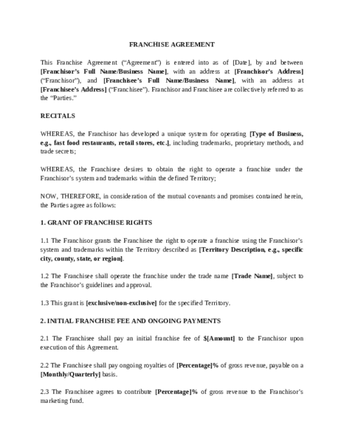 Franchise Agreement Templates