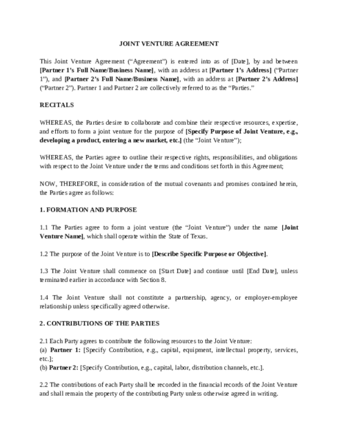 - Cape Coral Joint Venture Agreement Template Lawyers