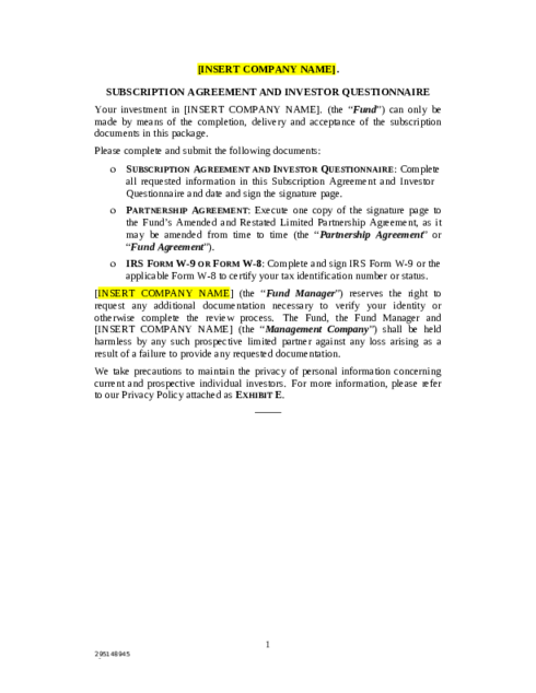 - Clients helped: 50 recent accredited investor subscription agreement projects