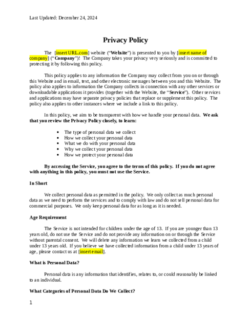 Illinois Need to add a Privacy Policy to my website (under development). I just opened a Texas LLC, the business is focused on direct-hire, professional search. Drafting