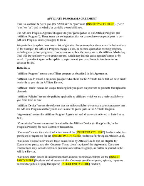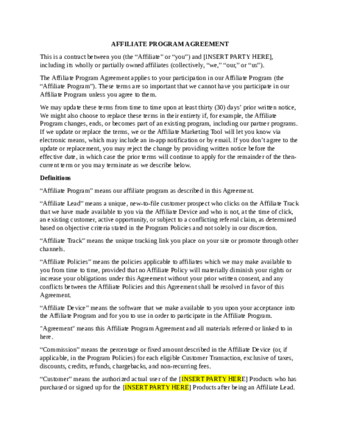 - Avg cost to draft an Affiliate Program Agreement: $750.00