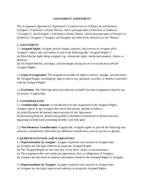 Assignment Agreement Templates