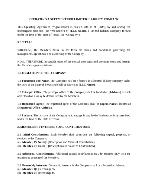 Quick Facts — Texas Operating Agreement Template Lawyers