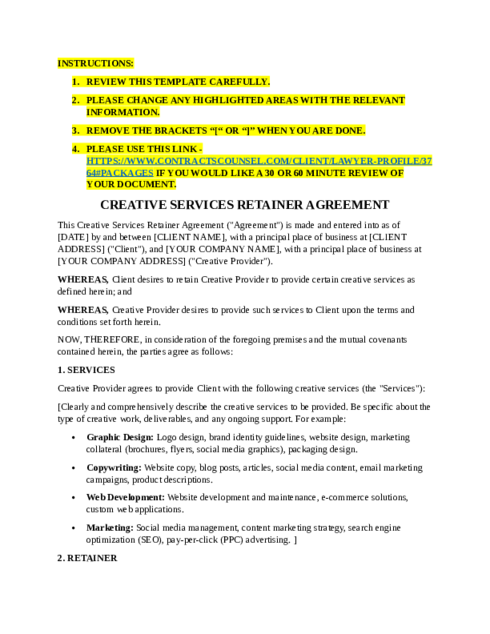 Review + Update my Creative Retainer Agreement