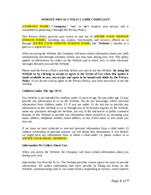- Clients helped: 151 recent website privacy policy projects
