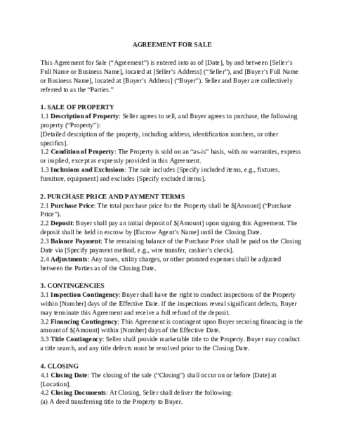 Agreement for Sale Template