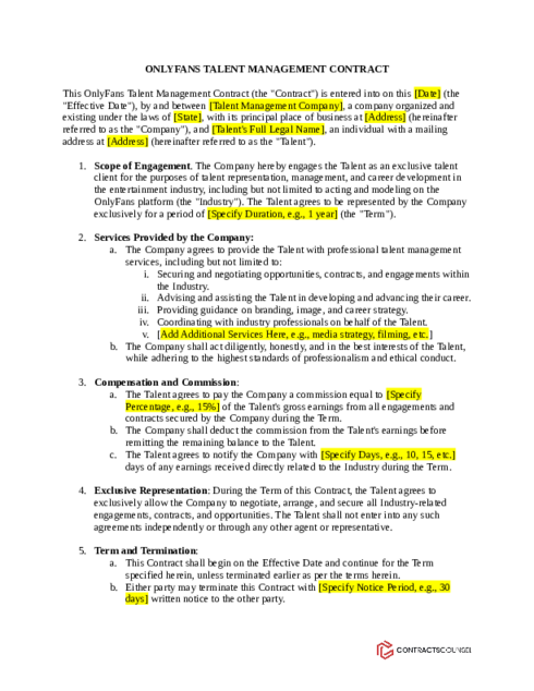 - Los Angeles OnlyFans Management Contract Template Lawyers