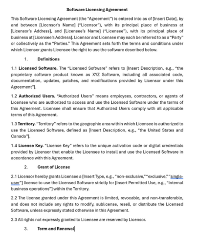 - Avg cost to draft a Software Licensing Agreement: $1470.00