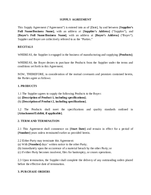 Find Supply Agreement Template by Types